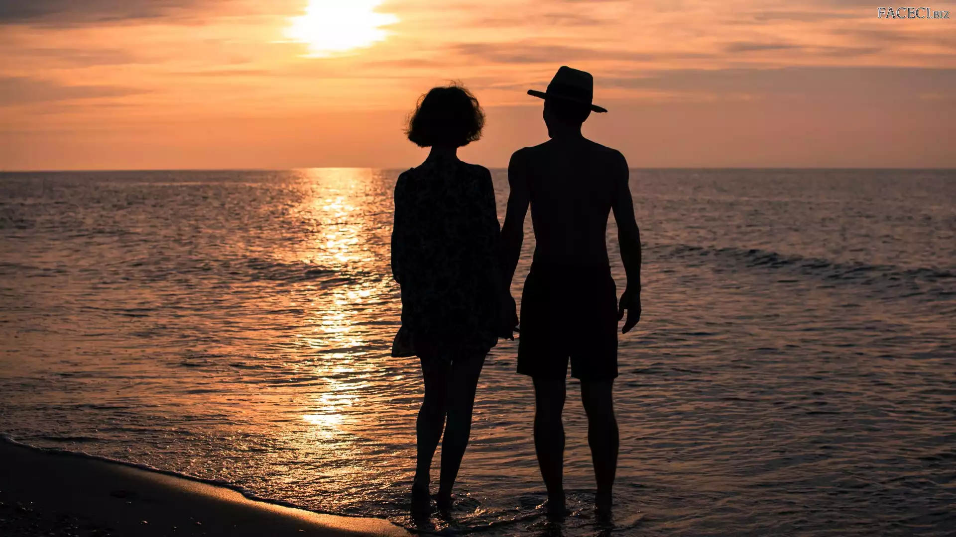 Zachód, Morze, Zakochani, Słońca - faceci.biz